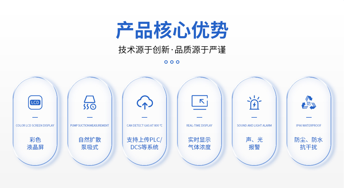 | 工作方式 | 固定式安裝,在線檢測,擴散式測量,管道式、流通式、泵吸式可選 |